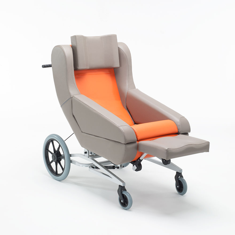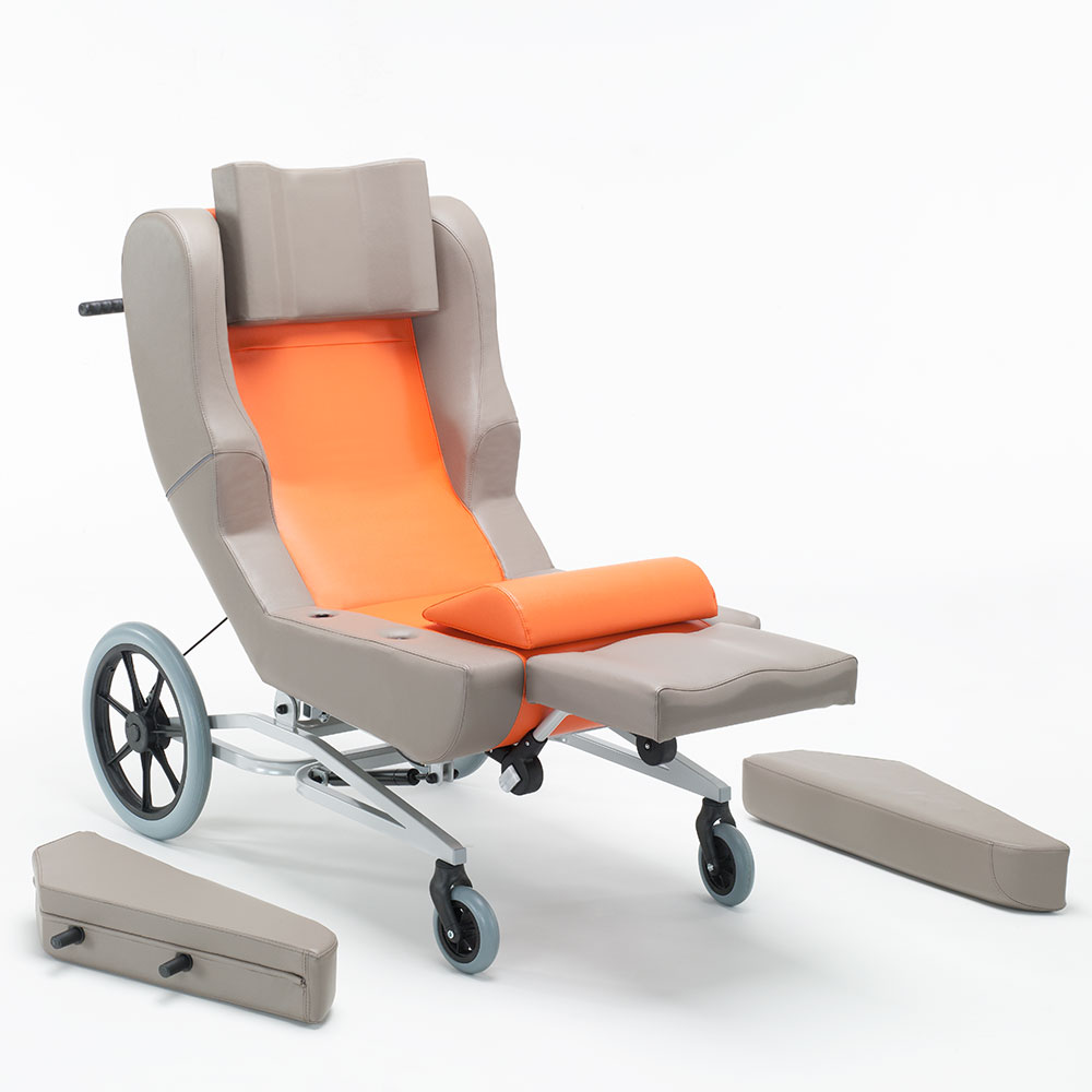 Hagen II balance transfer duo verfügt über eine abnehmbare Kopfstütze. Der Schulterbereich ist breiter. Die Fußstütze ist ergonomisch geformt und bietet somit Halt für die Unterschenkel. Die angenehme konkave Form passt sich optimal dem Körper an und bietet Geborgenheit. Die beidseitig abnehmbaren Armlehnen ermöglichen einen einfachen seitlichen Transfer des Patienten ohne Hilfe von Liftern. Dadurch wird die damit verbundene körperliche Anstrengung der Pfleger vermieden.