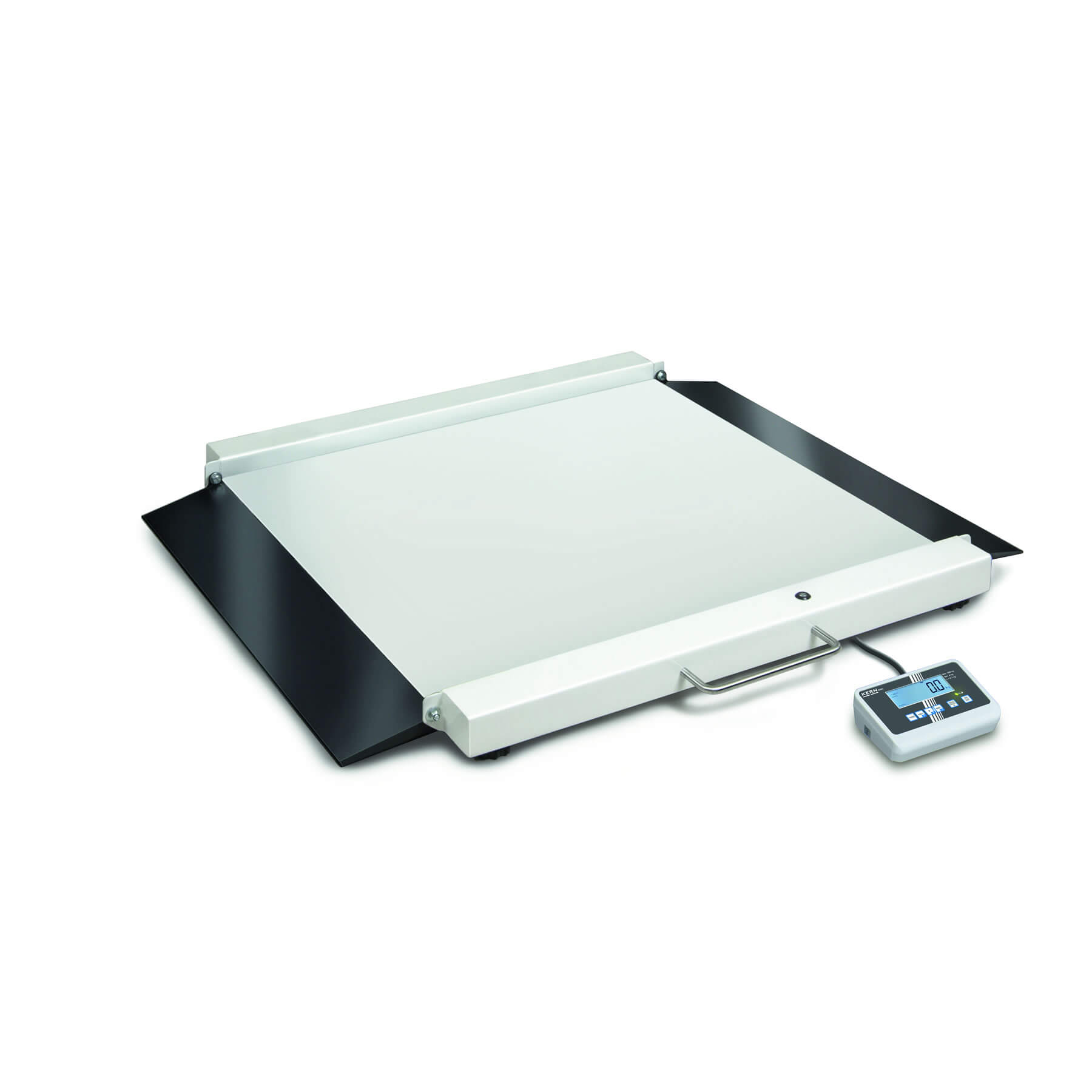 • Besonders geeignet für das Wiegen von Patienten in Rollstühlen, durch die beidseitig befahrbare Plattform mit niedriger Bauhöhe