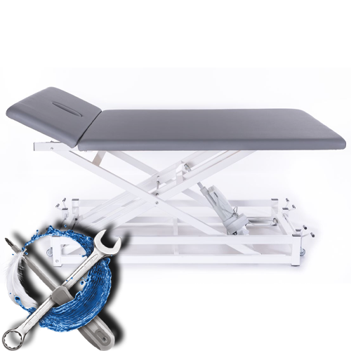 Bei der jährlichen Wartung Ihrer Pflegeliege führen wir eine STK, die elektrische DGUV-V3-Prüfung und einen vollständigen Funktions-Check (Hydraulik, Verstellmechanismen, Rollen) durch. Alle Ergebnisse werden im Servicebericht nach ISO 13485 festgehalten.